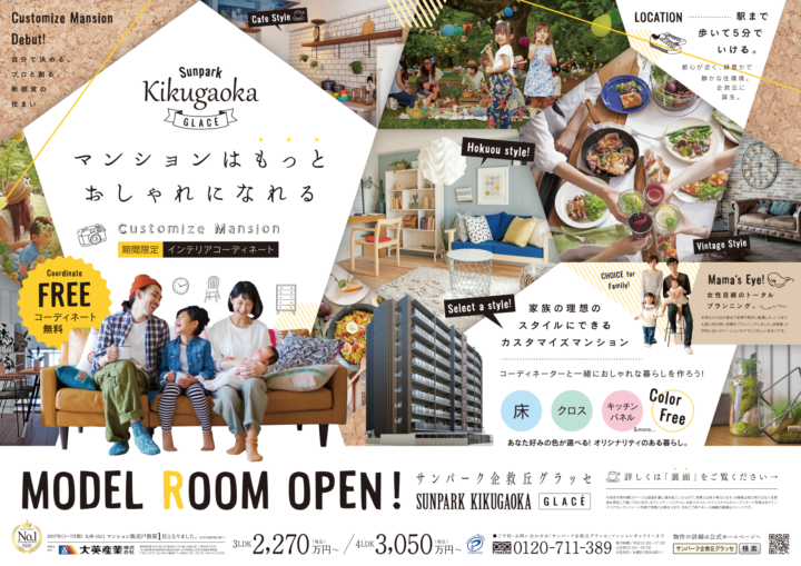 チラシ制作事例 – 不動産会社の不動産売買に関するチラシデザインASOBOAD。