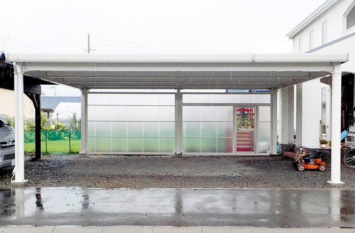 ポリカーボネートで快適な駐車帯広・釧路エクステリア&ガーデン設計施工Schop スコップ 北海道帯広市。