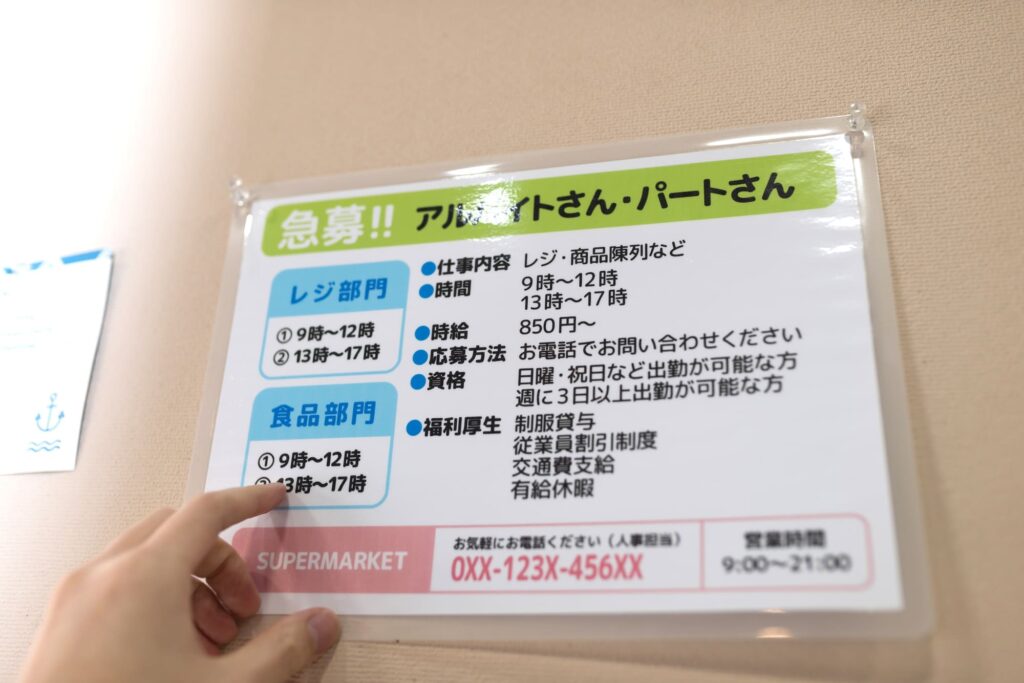 アルバイト募集の張り紙は効果ある?書き方や応募が集まるコツを解説シェアフルマガジンスキマバイト・単発バイト・短期バイト情報が充実!超レアなスキマ バイトや体験談も満載。