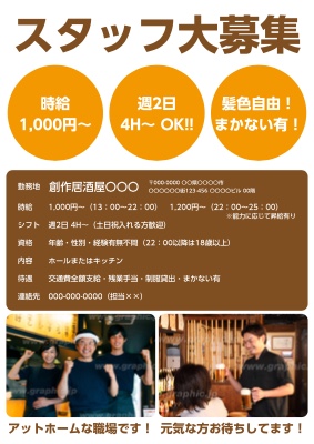 居酒屋_求人・アルバイト募集チラシ・フライヤーの無料デザインテンプレート - ネット印刷グラフィック。