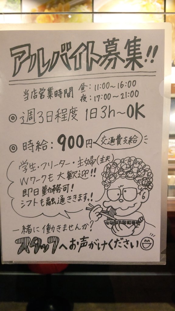 アルバイト募集の張り紙を A4サイズから A1サイズにしました。 募集する気持ちが大きいからです。 いつか店よりも張り紙が大きくなる前に一緒に働く人が見つかれば良いなと思います。