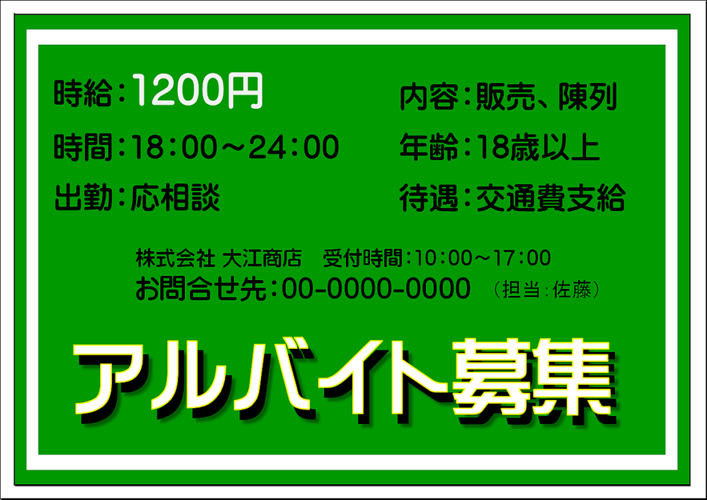 文書 テンプレートの無料ダウンロード: 求人募集・求人広告の張り紙 貼り紙 ・チラシ・ポスタ。