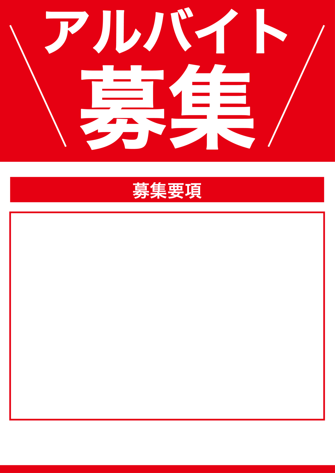 求人募集の張り紙テンプレート・求人募集・正社員・アルバイト無料テンプレートTemplateBox。