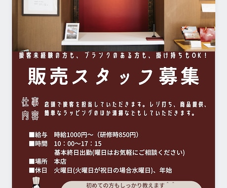 バイト募集のチラシ貼り紙を作ります ☆バイト募集をネットで行い効果が得られなかった方へ☆ココナラ。