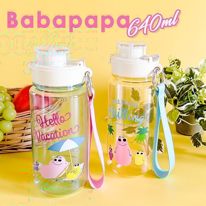 ストラップ付き 水筒 バーバパパ ドリンクボトル BP VACATION おしゃれ クリア クリアボトル 子供 ワンタッチ 直のみ 飲みやすい 遠足ジム 外出 キャンプ 夏 遊び プール クリア 透明 マイボトル 軽量 軽い たっぷり ストラップ 持ち歩き キッズ -オパビニアギフト。