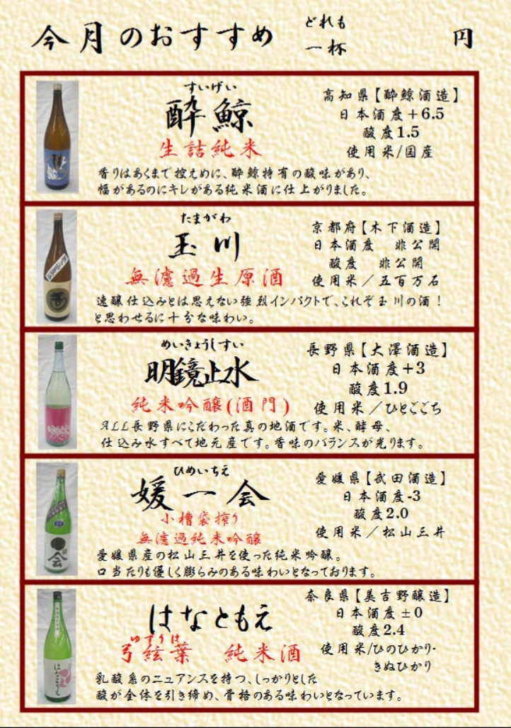 日本酒オススメメニュー更新🍶 - 日本酒が豊富な居酒屋 地元家。