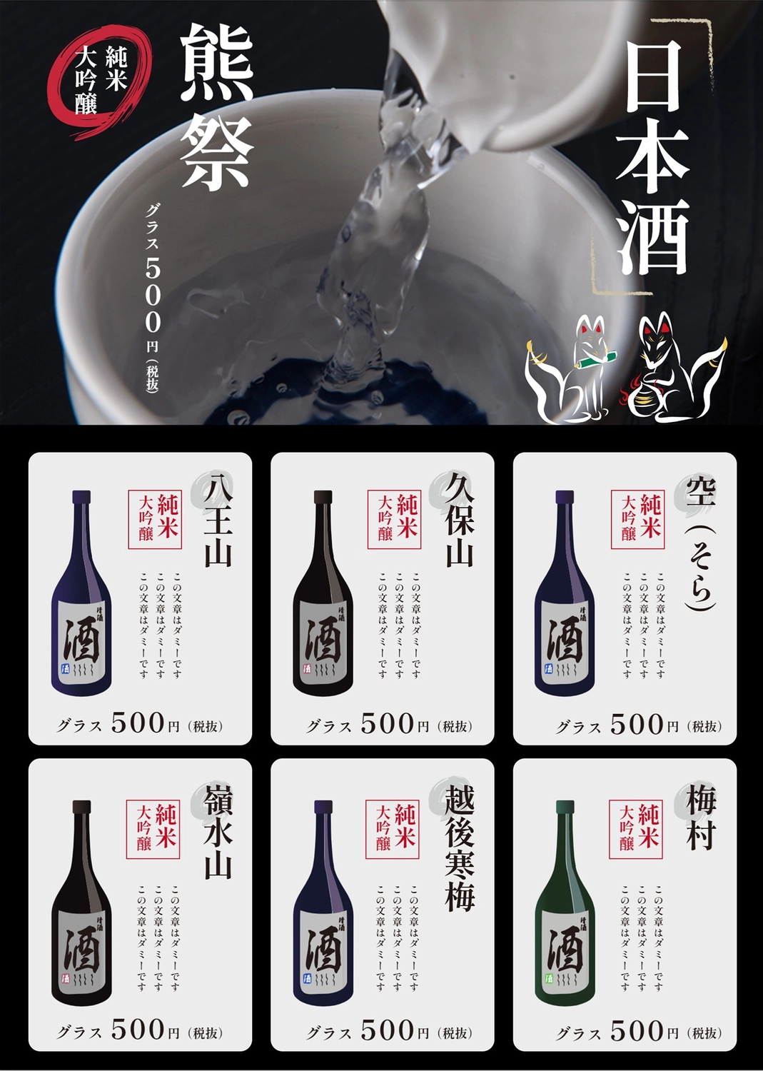 日本酒のメニューの無料メニューテンプレート 8562 - デザインAC。