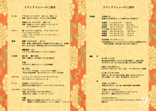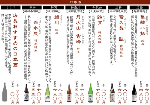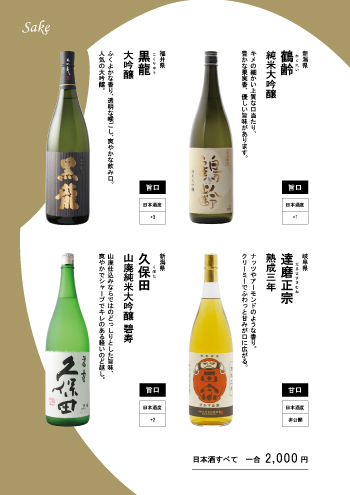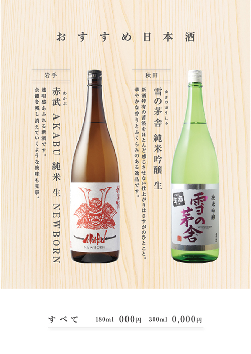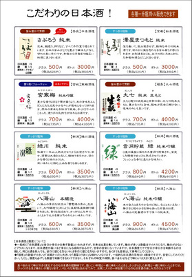 ドリンクメニュー サンプル- 飲食店さまへお酒の卸蔵元特約店。