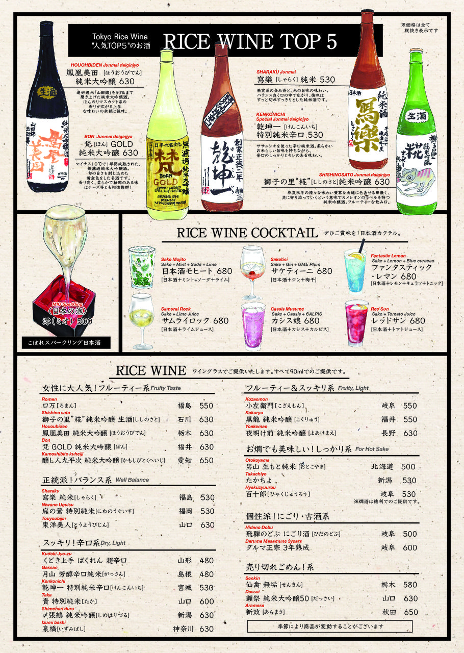 イラストメニューブック Tokyo Rice Wine:ドリンク 日本酒メニューDELICIOUS LIFE。