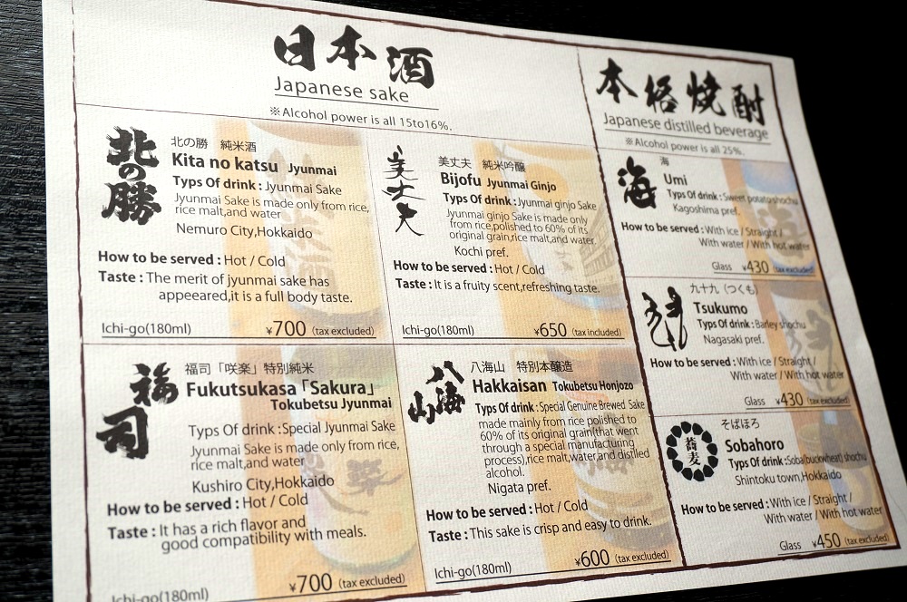 日本酒メニュー表の作成 : イラストレーターふくいかつひこポートフォリオサイト。