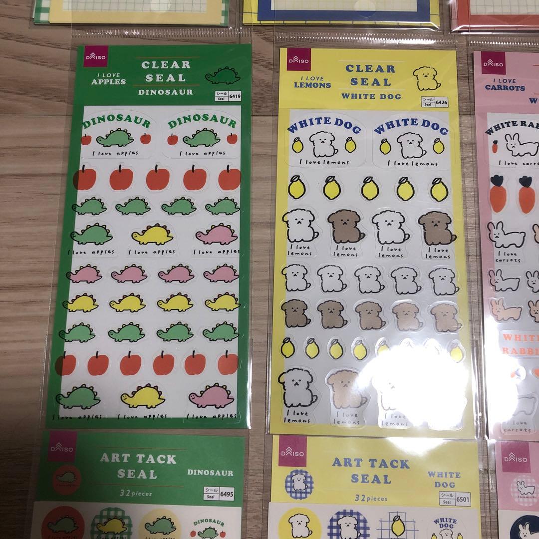 ダイソー 一筆箋 クリアシール シール 恐竜 いぬ うさぎ くま 手紙。