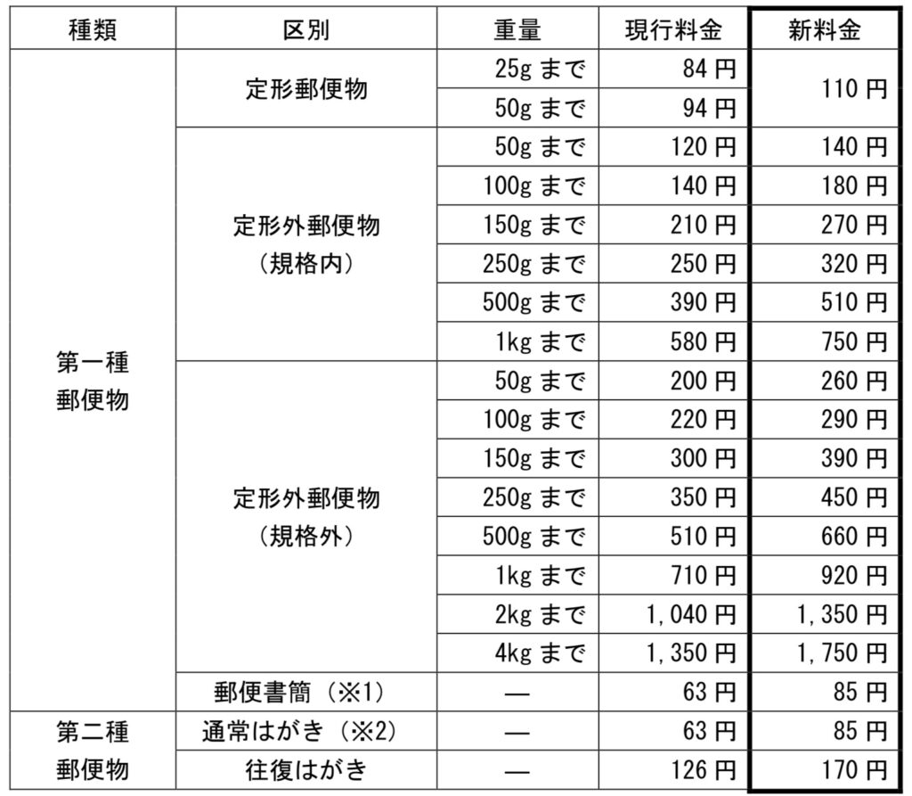 定形郵便と定形外郵便の違い!重量、サイズ、料金を比較トリセド。