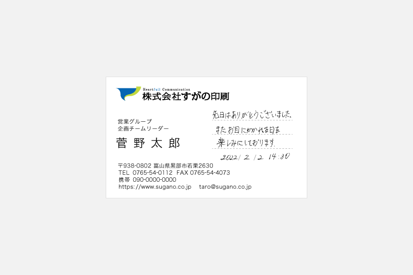 営業活動の必須アイテム!「コミュニケーションが広がる名刺」を作成するための3つのポイント株式会社すがの印刷。