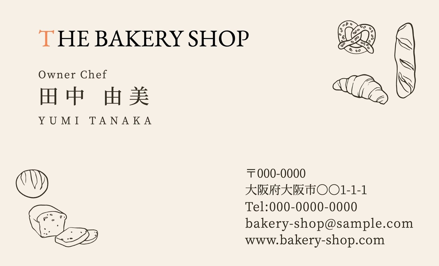 手書き風パン屋の名刺の無料名刺テンプレート 5319 - デザインAC。