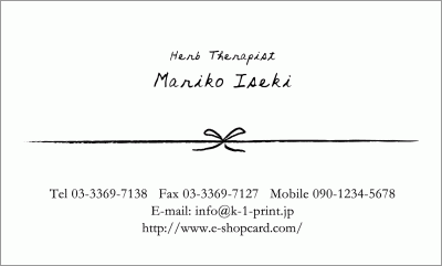 手書きのリボン結びで気持ちを込めて名刺を渡そう♪ クリエイター名刺-井関麻理子:d-0236デザイン名刺.net。