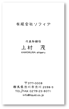 ビジネス名刺。手書き文字で、最も気取らない、見栄を張らない、シンプルな名刺デザイン。