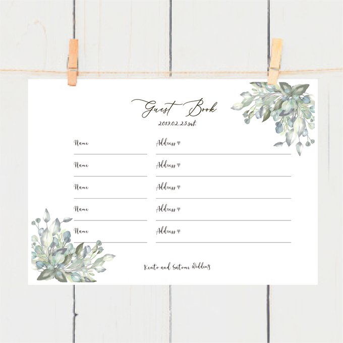 印刷可能な結婚式のゲストブックページ 結婚式のゲストブック ゲストブックの印刷可能なテンプレート 即時ダウンロード PDFファイル 青い花 緑 -Etsy 日本。