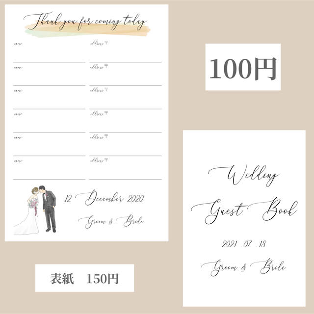 厚手上質紙 ¥100 芳名帳 ゲストブック - hina-1229minne byGMOペパボ 国内最大級のハンドメイド・手作り通販サイト。