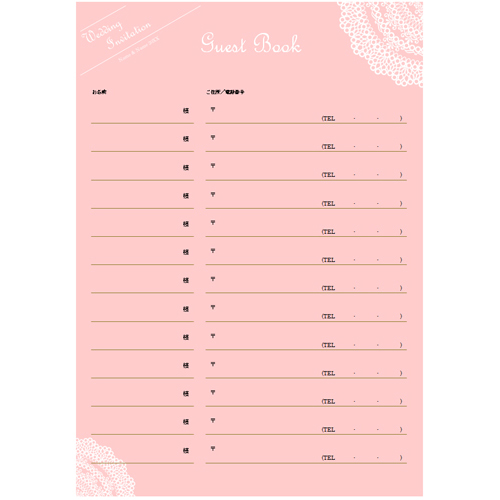芳名帳ウエディング・キュート- 無料テンプレート公開中 - 楽しもう Office。