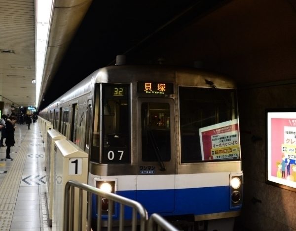 福岡市地下鉄箱崎線 貝塚駅にて At Kaizuka Station on the Fukuoka City Subway Hakozaki Line。