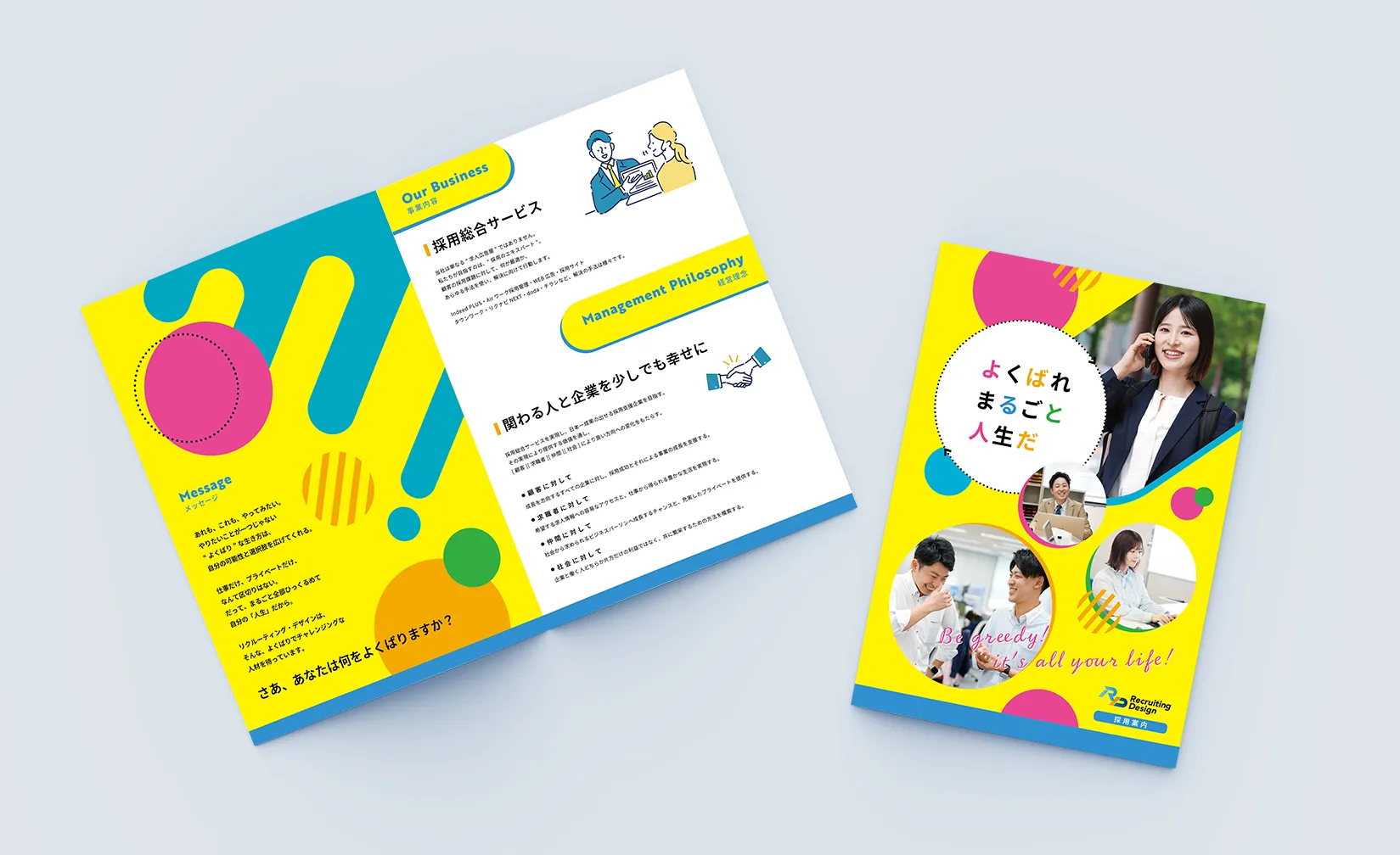 採用パンフレット・チラシ制作 - 株式会社リクルーティング・デザイン。