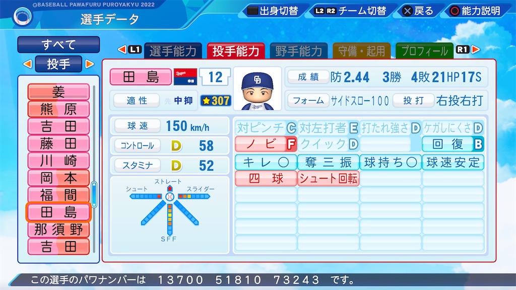 田島 慎二2016 パワプロ2023再現選手- パワプロたんのブログ。