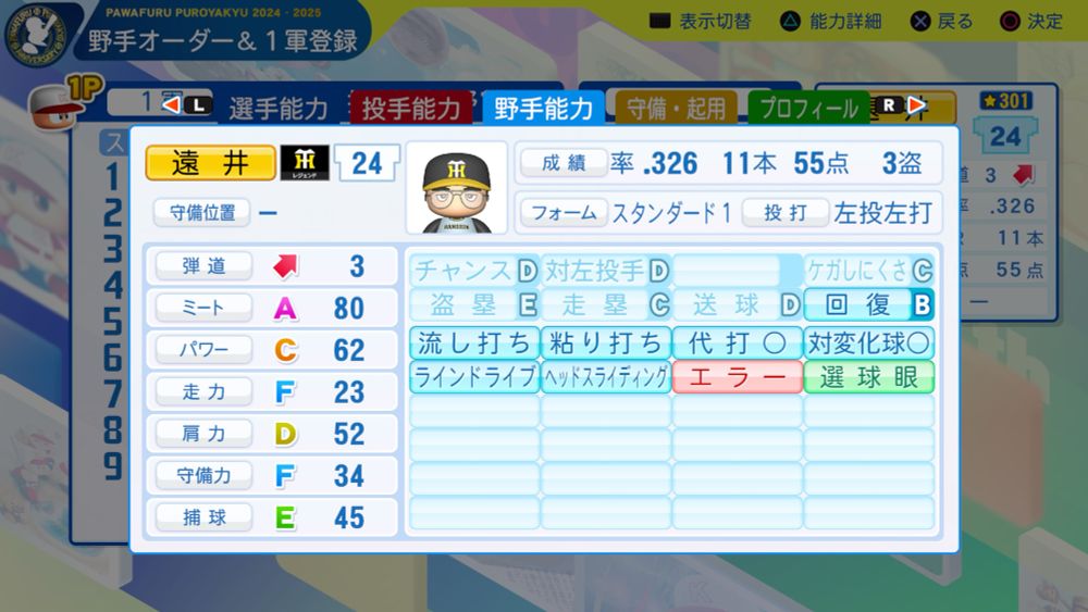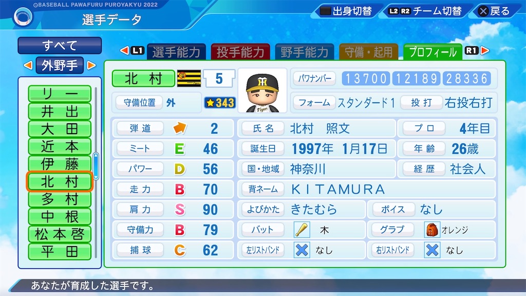 北村照文 阪神~パワプロ2024再現選手~もーたの雑記データバンク。