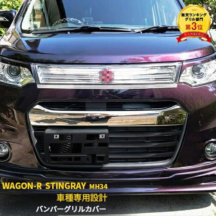 楽天市場大放出セール☆15%OFF大人気 送料無料 SUZUKI ワゴン-R スティングレー MH34S前期 2012.9〜2014.8 フロント バンパー グリル ガーニッシュ グリルカバー モール ステンレス製 鏡面仕上げ ドレスアップ カスタムパーツ 車用品 アクセサリー 外装 EX349。