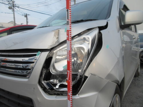 スズキ ワゴンR フロントバンパー破損 交換修理グーネットピット。