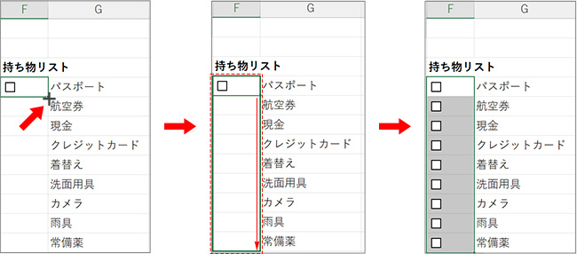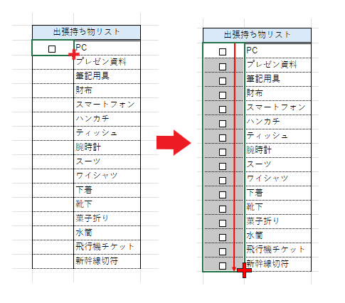 Excelのチェックボックスの代わりにリスト形式のチェックボックスを使う方法Excel x Spreadsheet。