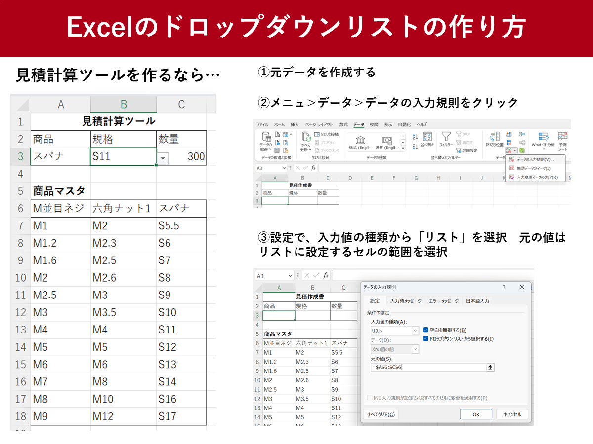ドロップダウンリストは入力規則で簡単設定 Excel。