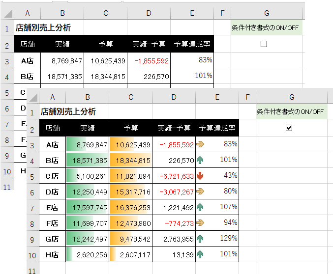 条件付き書式のオンとオフをチェックボックス ドロップダウンリストで操作Excel 2021初心者のためのOffice講座。