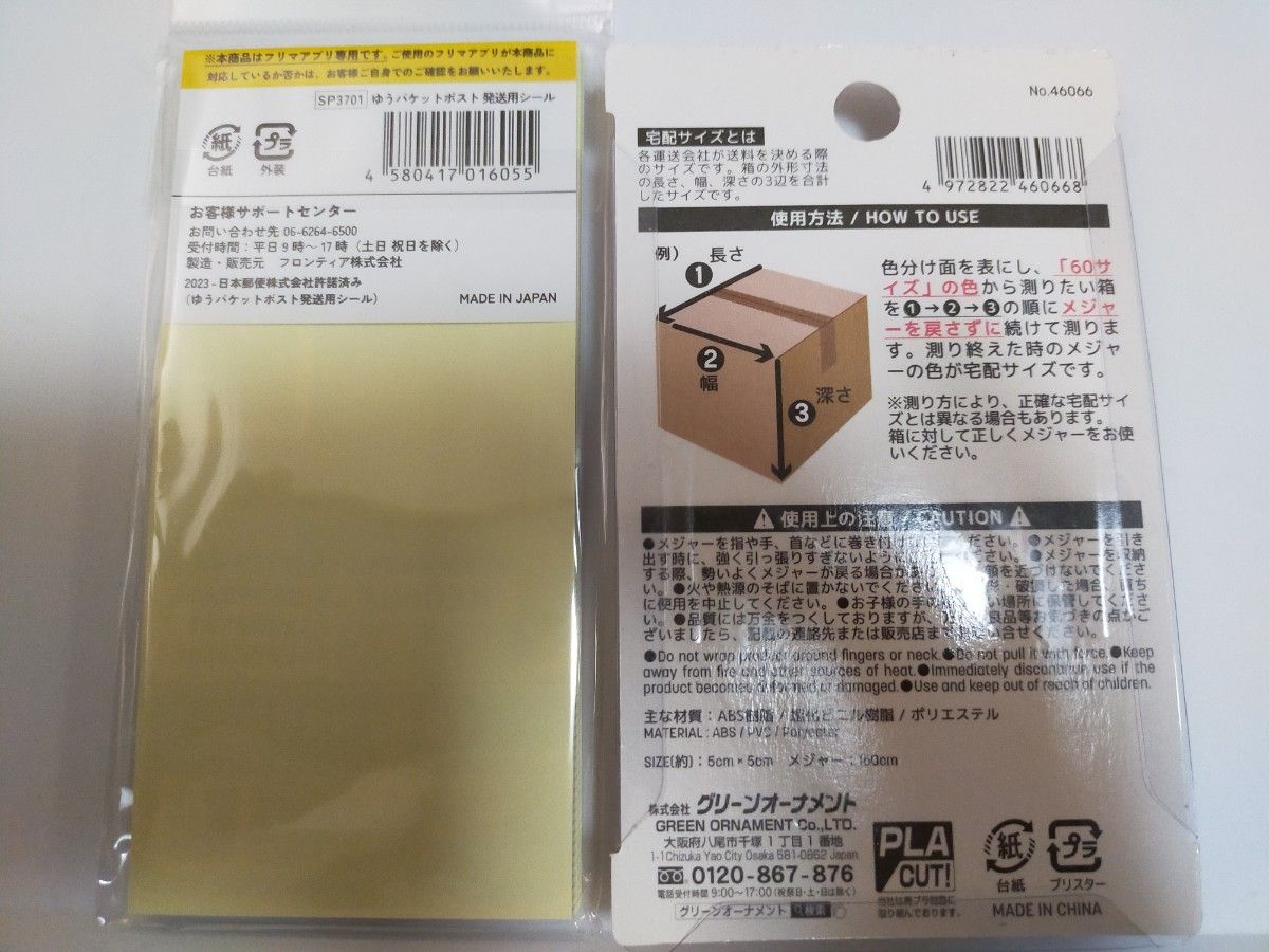 ゆうパケットポスト用シールダイソー巻き尺メジャーセットフリマ発送に。