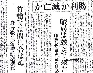 敷島_金鵄@侏儒の艦提 on X: " 今日は何の日竹槍事件 「勝利か滅亡か 戦局はここまで来た」 「竹槍では間に合わぬ 飛行機だ、海洋航空機だ」1944年:新名丈夫の記事が毎日新聞に掲載 深刻な航空機不足に直面していた海軍に同調し、戦争は肯定した上で戦況の悪化を伝えた。