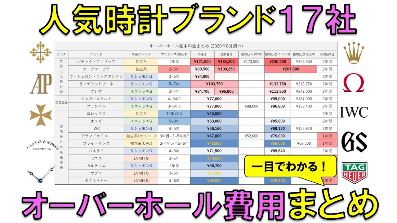 人気時計ブランド17社のオーバーホール料金と特徴まとめ 保存版- 腕時計のある人生。