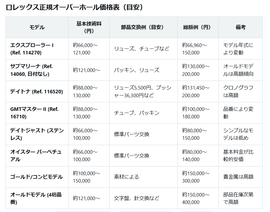 時計修理技術者コラムVol.48 ≪2025年最新版≫ロレックスの正規オーバーホールの価格を調査しました!WATCH COMPANY。