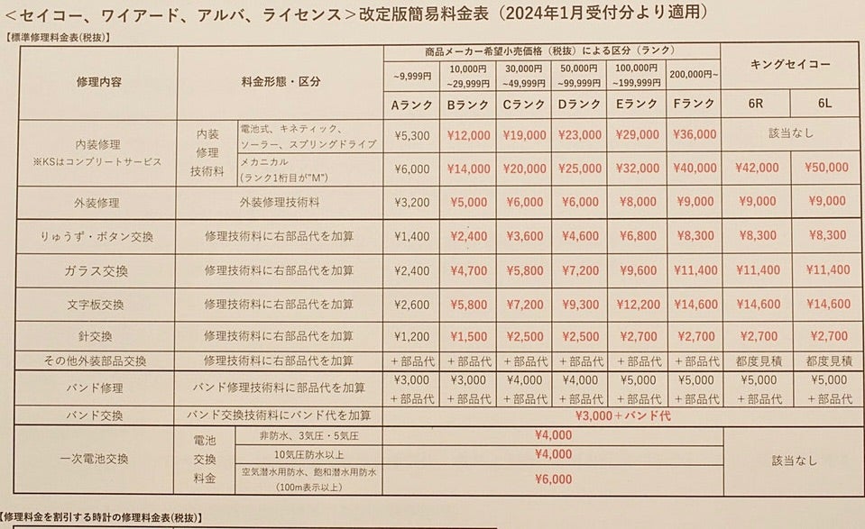 セイコー修理料金表 2024とおススメ時計。4s15アルピニストのブログ 大阪編。