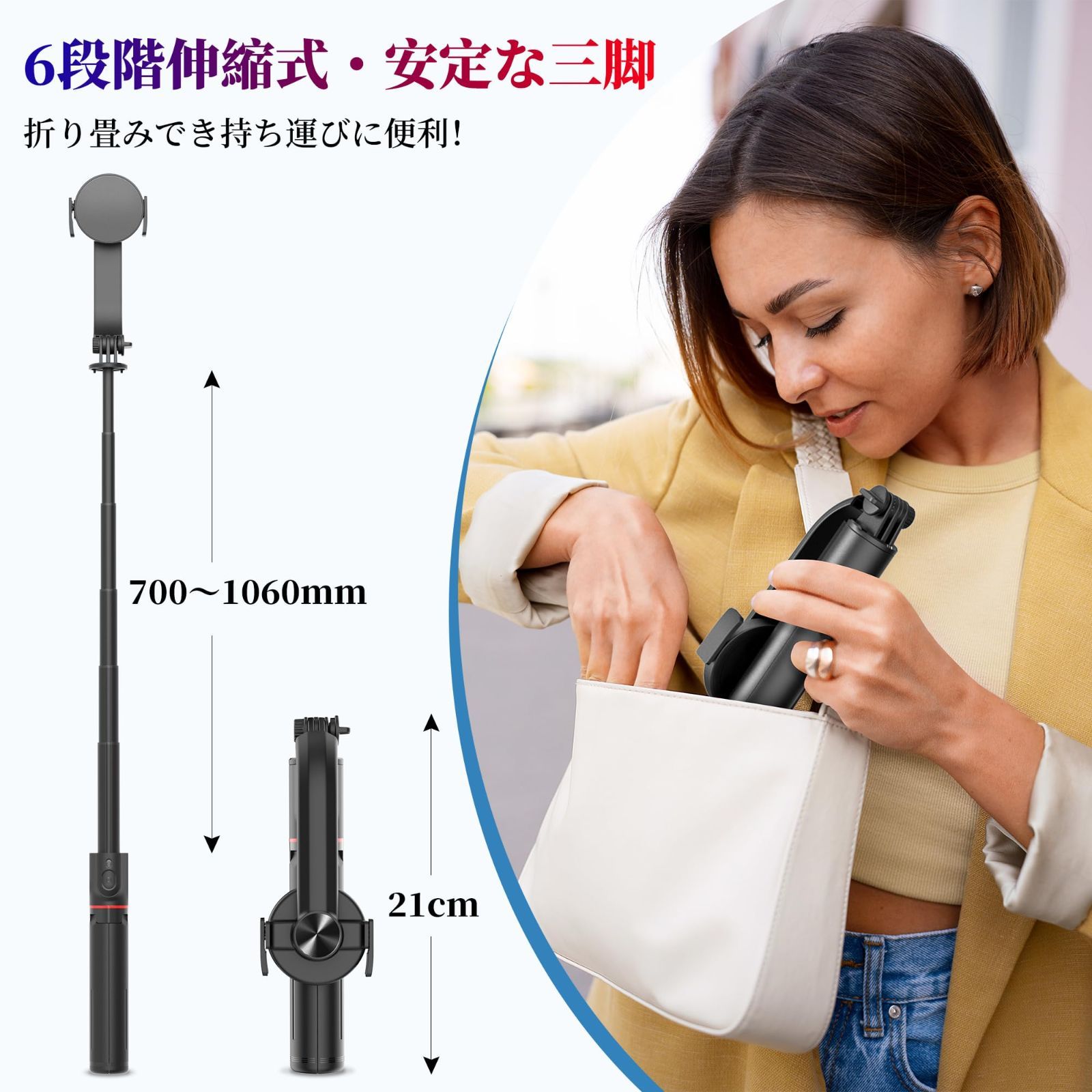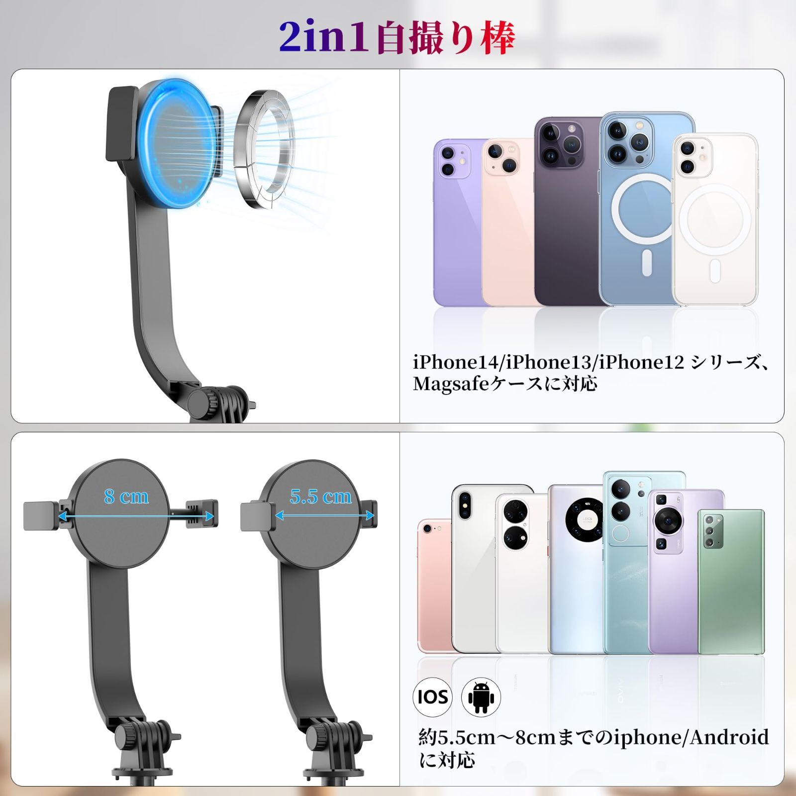新品 iphone Android対応 ビデオ通話 リモコン付き 10m遠隔操作 角度調整可能 撮影 片手操作 スマホスタンド 磁気やクリップでスマホをしっかり固定会議などに最適 6段伸縮 三脚 自撮り棒ブラックMagSafe2023新登場 S - メルカリ。