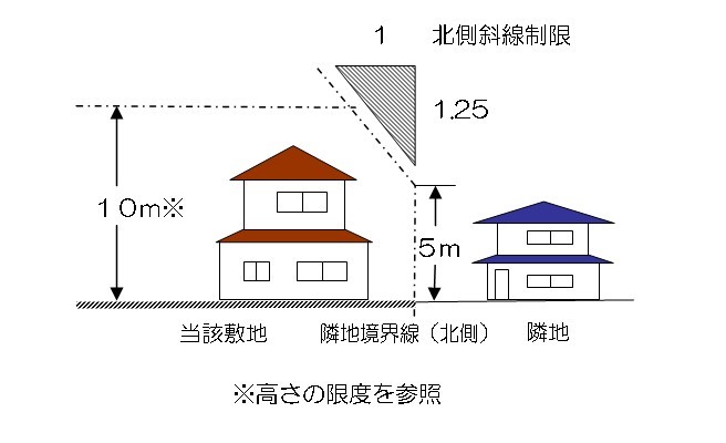 北側斜線制限』とは対象地域・計算方法・緩和規定まとめ – 確認申請ナビ。