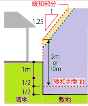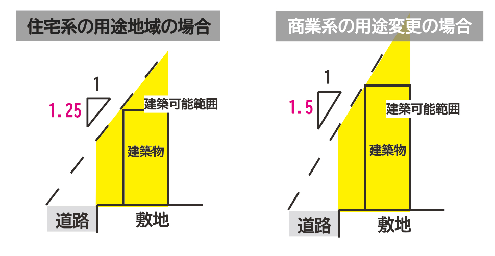 道路斜線 1.25緩和 とは?用途地域や斜線制限についてイラストで説明。