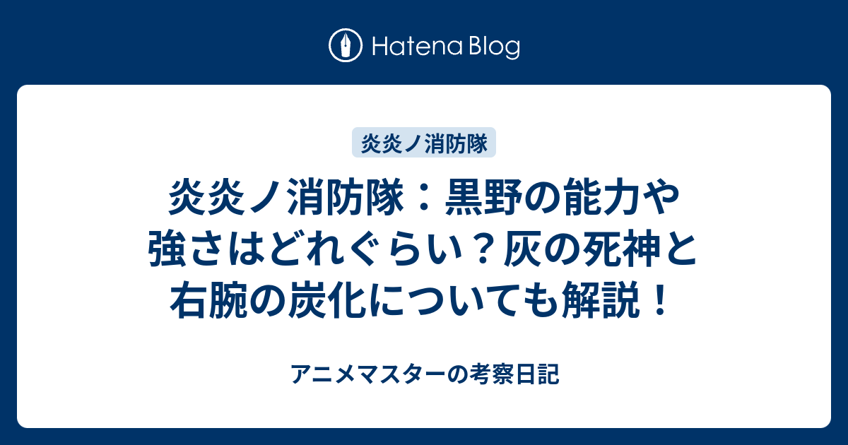炎炎ノ消防隊:黒野の能力や強さはどれぐらい?灰の死神と右腕の炭化についても解説! - アニメマスターの考察日記。
