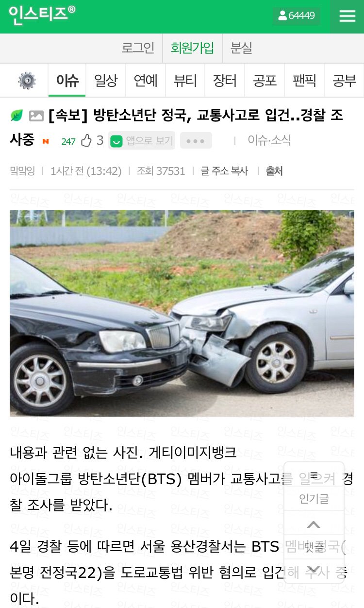 つぶやきこ・りあ⁷ on X: "この記事の画像に関して調査をしてくださった皆様のおかげでジョングクの事故とは無関係の画像ということがわかりました。本当にありがとうございました。 ※他の記事に掲載された事故車画像には、“関係ない画像”と添え書きがありましたが、この。