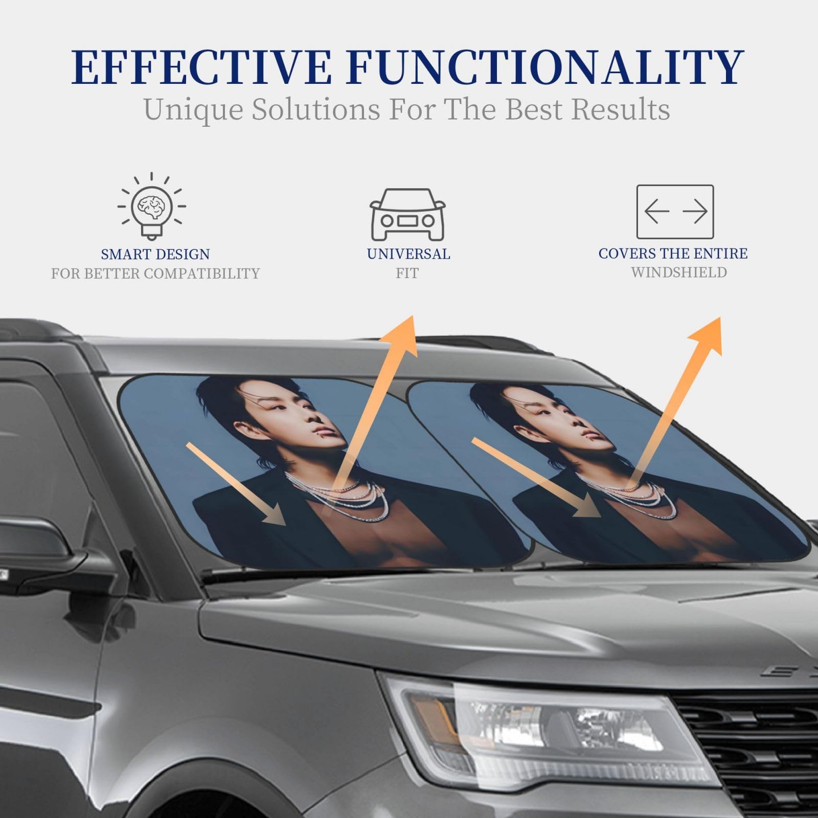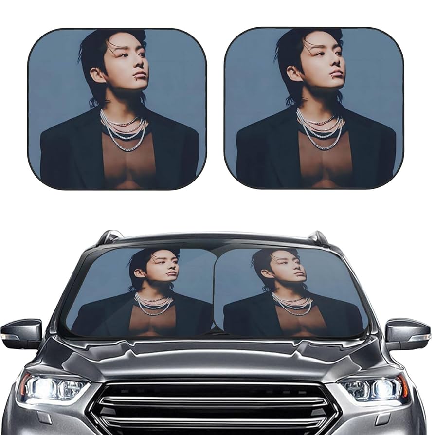 AmazonJungkook ジョングク2車用サンシェード サンバイザー 日よけ 紫外線対策 カーサンシェード 四季兼用 車用品 折畳み便利 遮光 断熱 吸盤4個付サンシェード車&バイク。