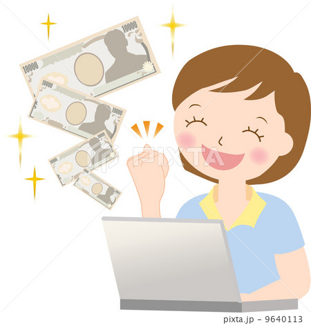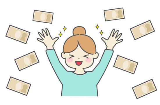 臨時収入に喜ぶ女性のイラストのイラスト素材83527715- PIXTA。