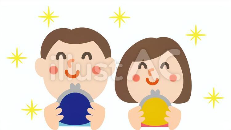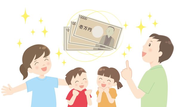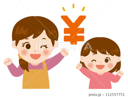 臨時収入を受け取る親子のイラストのイラスト素材112557751- PIXTA。