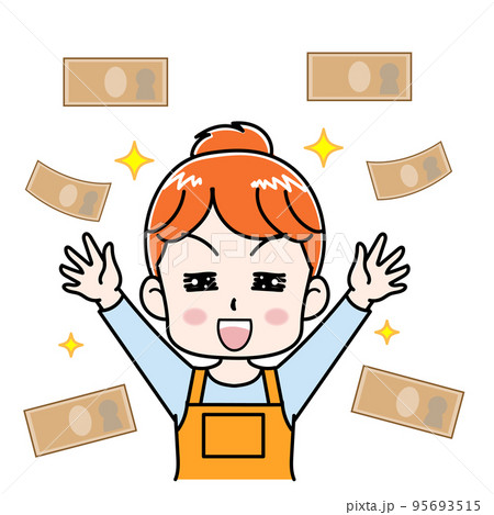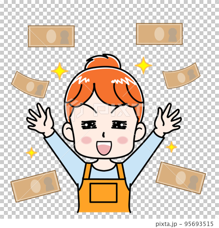 臨時収入が入って喜ぶかわいい主婦のイラストのイラスト素材95693515- PIXTA。