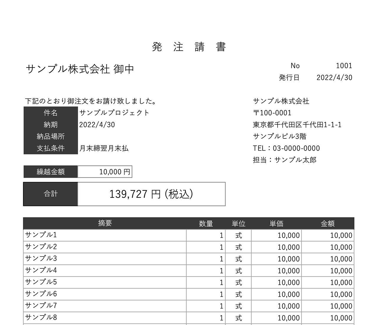 注文書・発注書テンプレート 無料DL Excel・Word対応建設業・個人利用の書き方と記入例Bizroute。