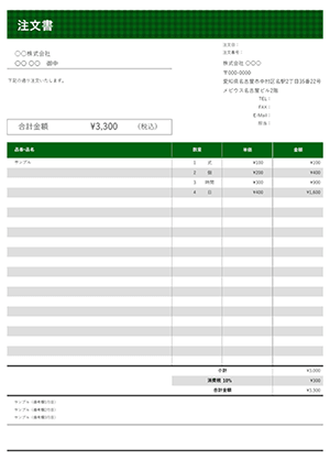 注文書の書式・文例テンプレート Excel・エクセルテンプレート・フリーBiz。