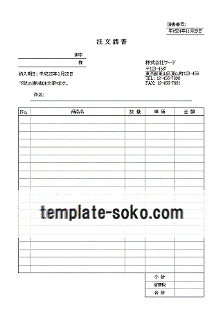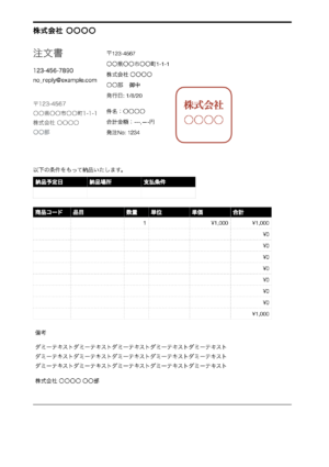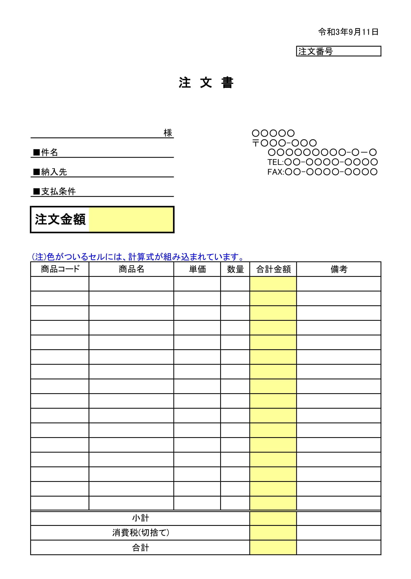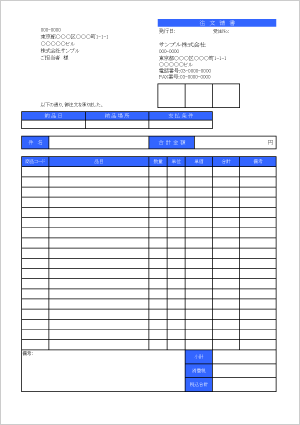 文書 テンプレートの無料ダウンロード: 注文書 注文状・発注書Excel版表形式。