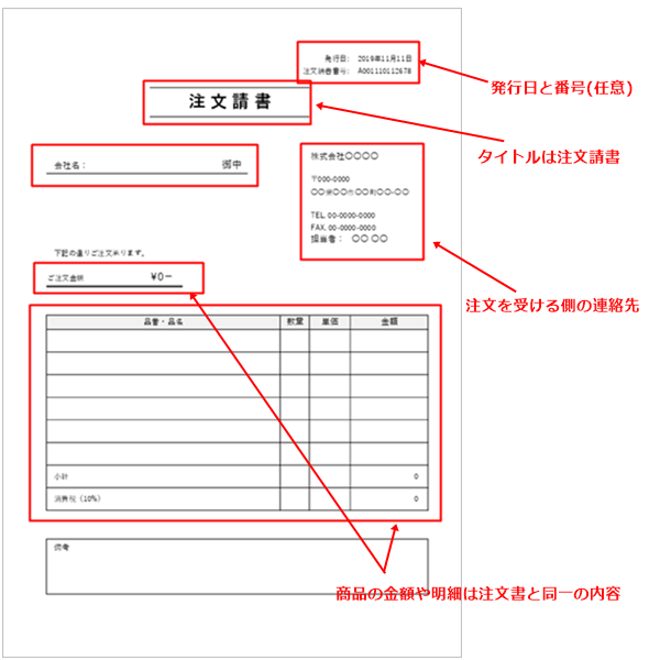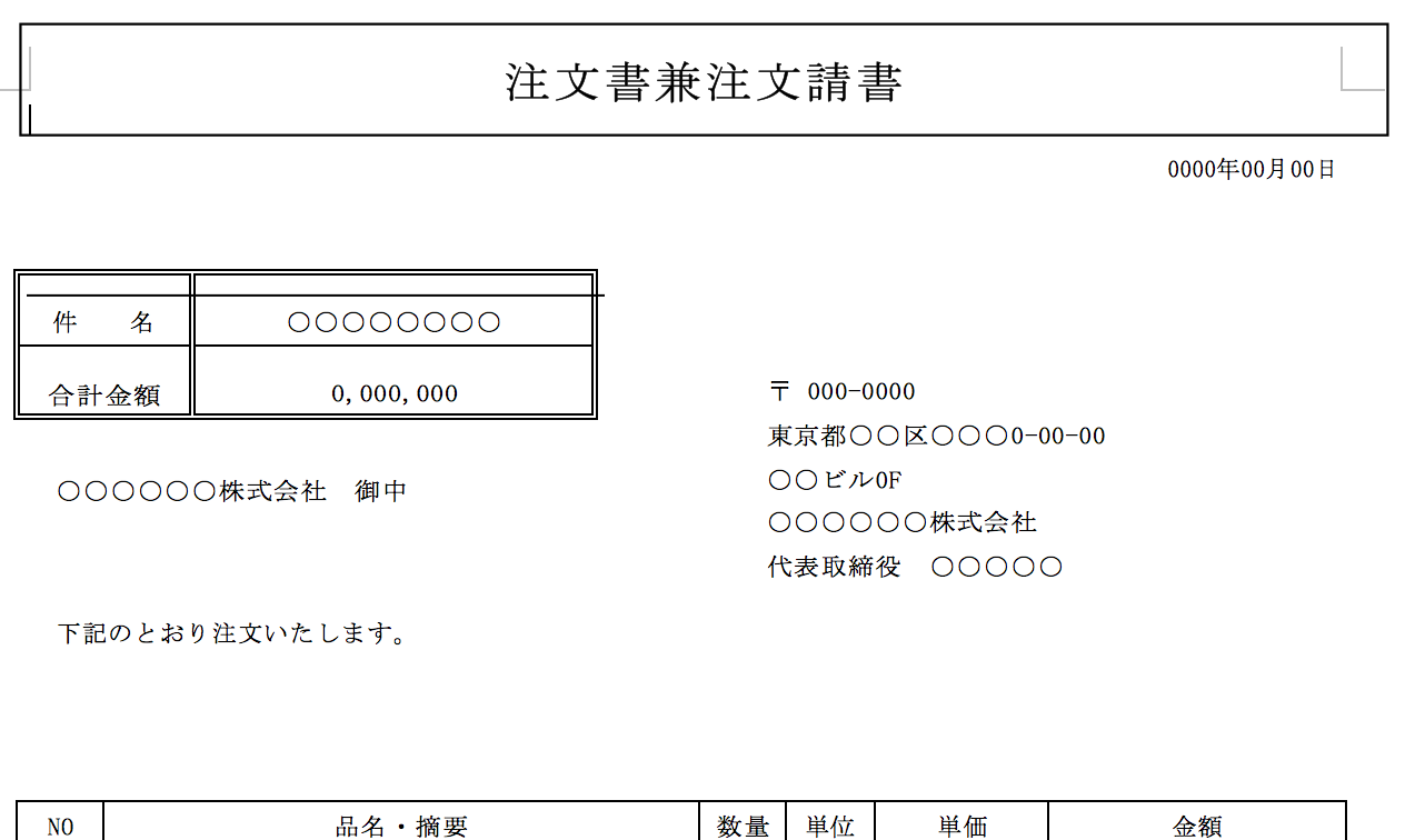 注文請書テンプレート 無料ダウンロード エクセル・記入例・書き方解説Bizroute。